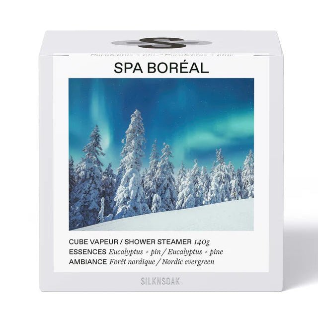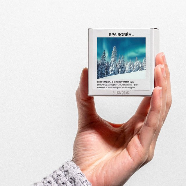 Rehaussez votre routine de douche avec le Cube Vapeur SilknSoak, un cube infusé aux huiles essentielles d'eucalyptus et de bois de cèdre.
